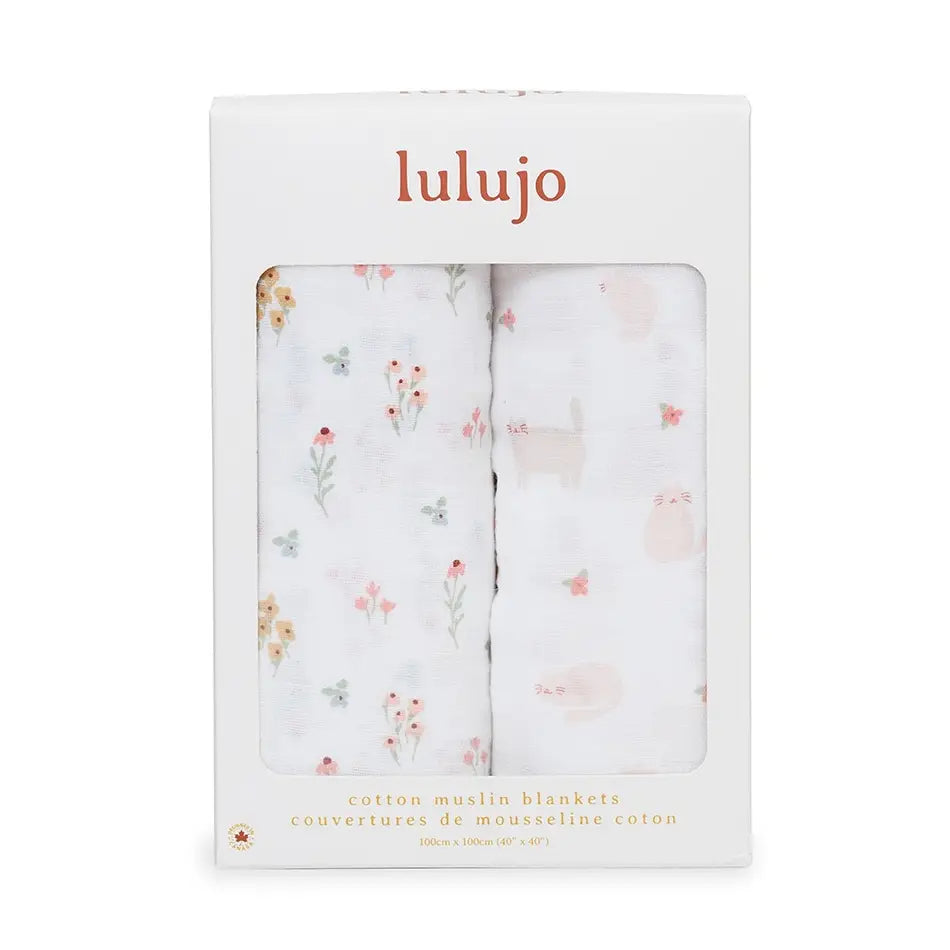 LULUJO SWADDLE SET - KITTY CATS + FLOWERS