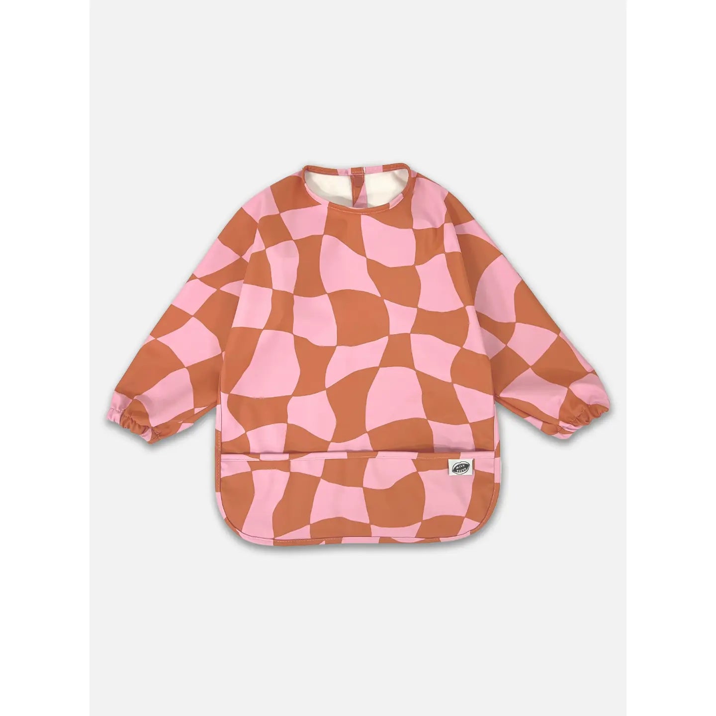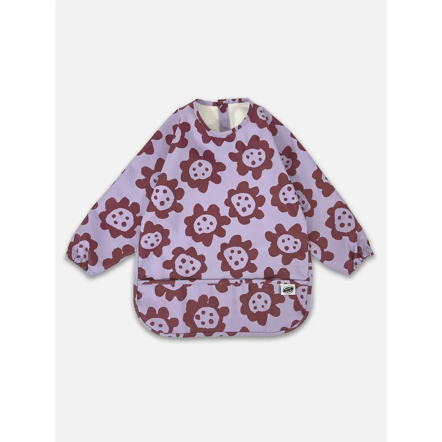 Our long sleeve smock bibs come in six artist-designed colorways, perfect for messy eaters and arts-and-crafts enthusiasts. These waterproof outfit-savers are made from 100% recycled materials and fit ages 6 months - 3 years. Oeko-tex certified fabric wipes clean, has a soft feel, and has been safety tested. These are longer in the body than most sleeved bibs, to allow for more outfit coverage (less laundry!) and to accommodate older toddlers, too. These make a great gift for growing kids.