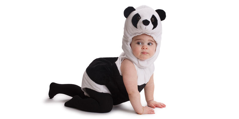 Outfit closes with snaps for easy Diaper changing Detailed panda faced hood with ears tops off the costume.