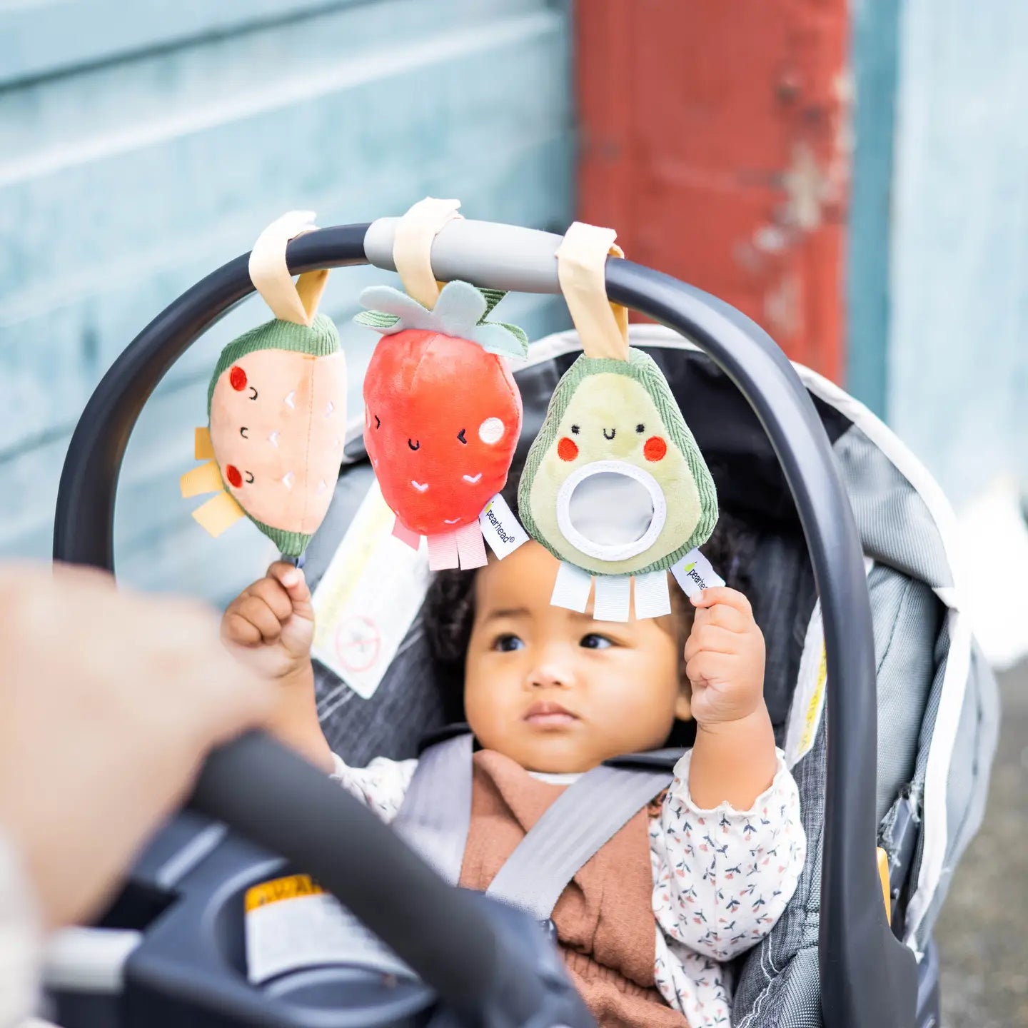 • Your little baby will love playing with these adorable on-the-go fruit stroller or baby car seat toys by Pearhead!
